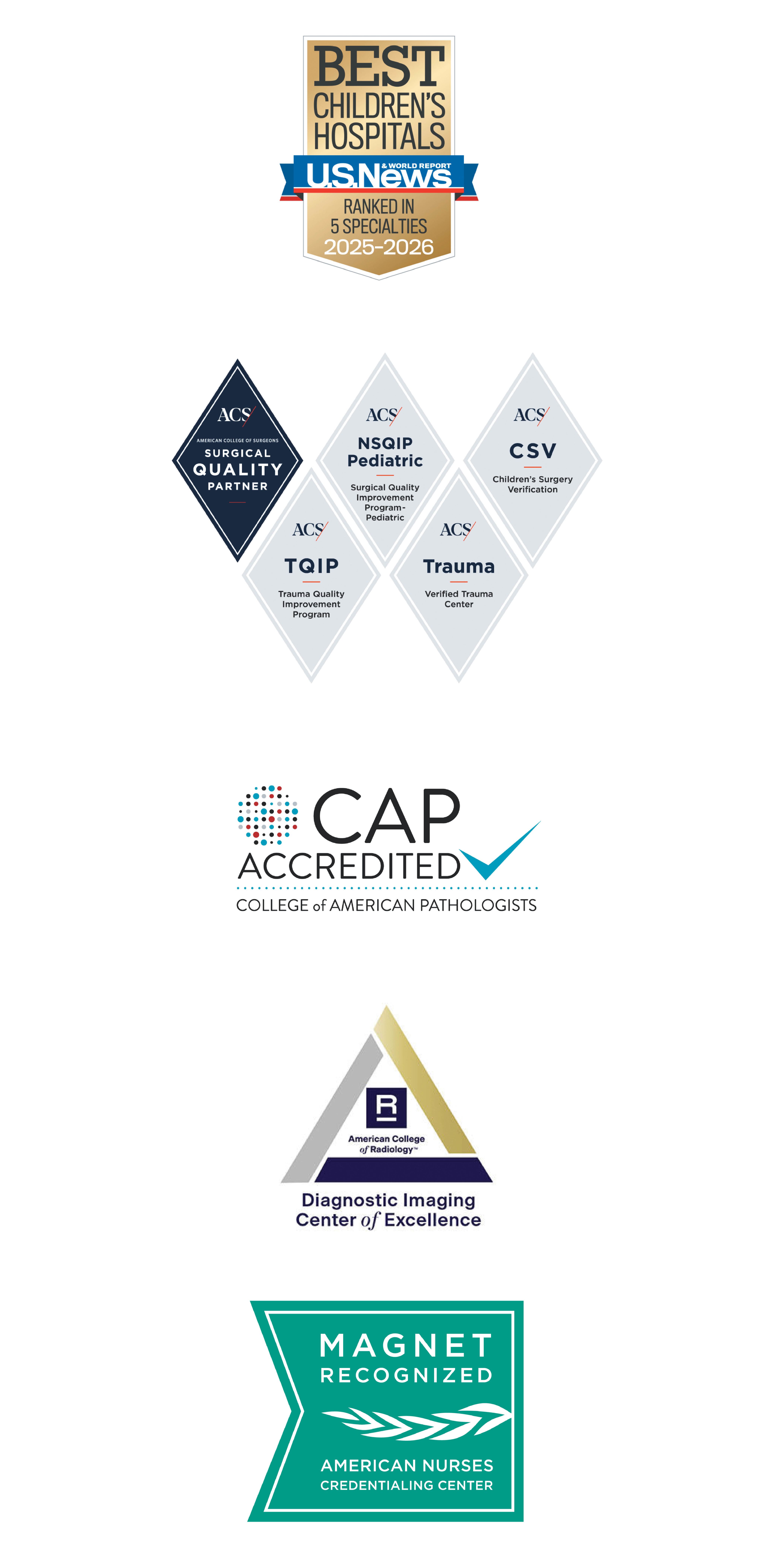As an American College of Surgeons (ACS) Surgical Quality Partner, Children’s Wisconsin is committed to the highest standards of surgical care. This designation reflects our proven record of adhering to the most rigorous standards in surgical quality — to minimize complications, improve outcomes and save lives.